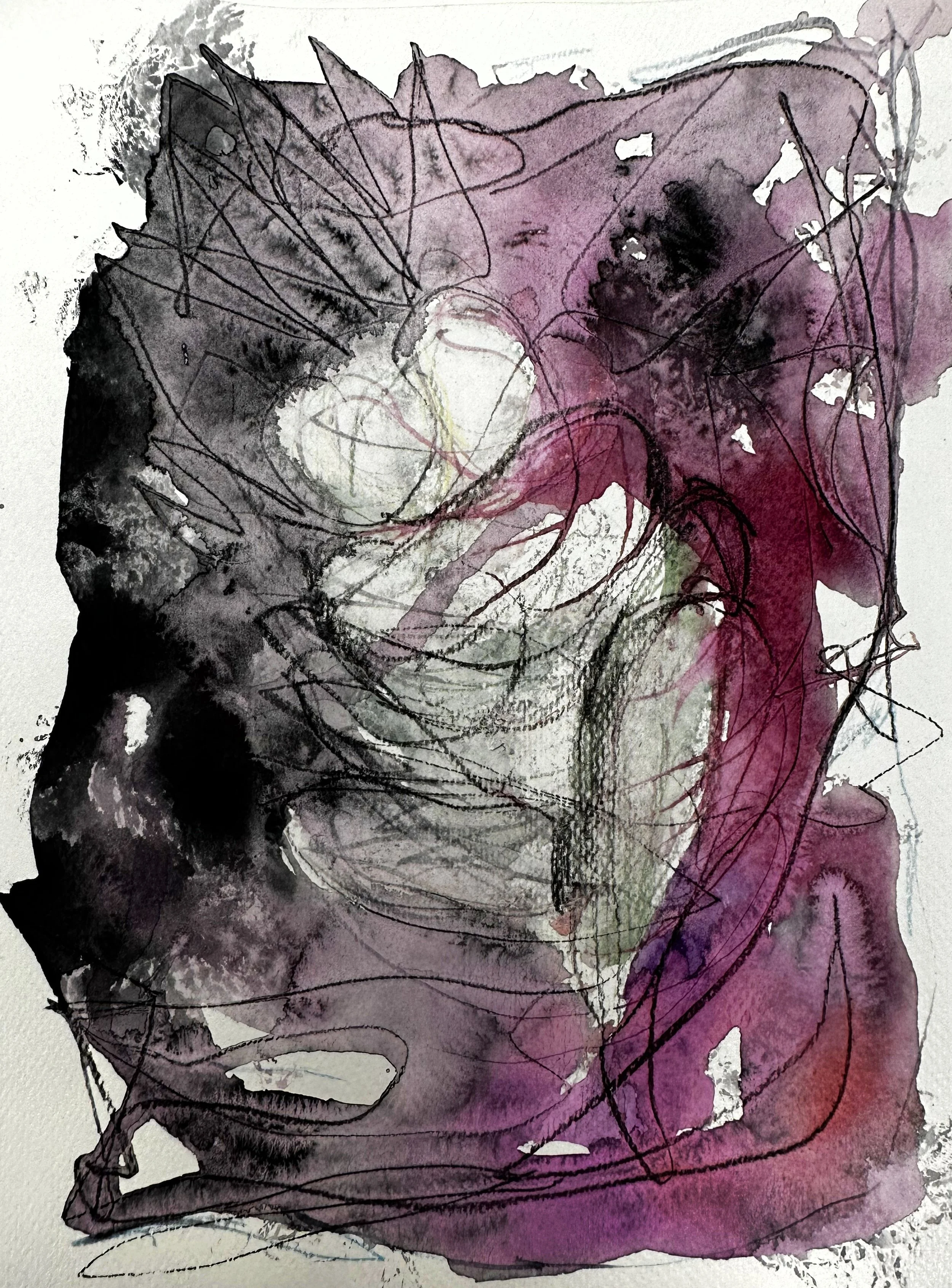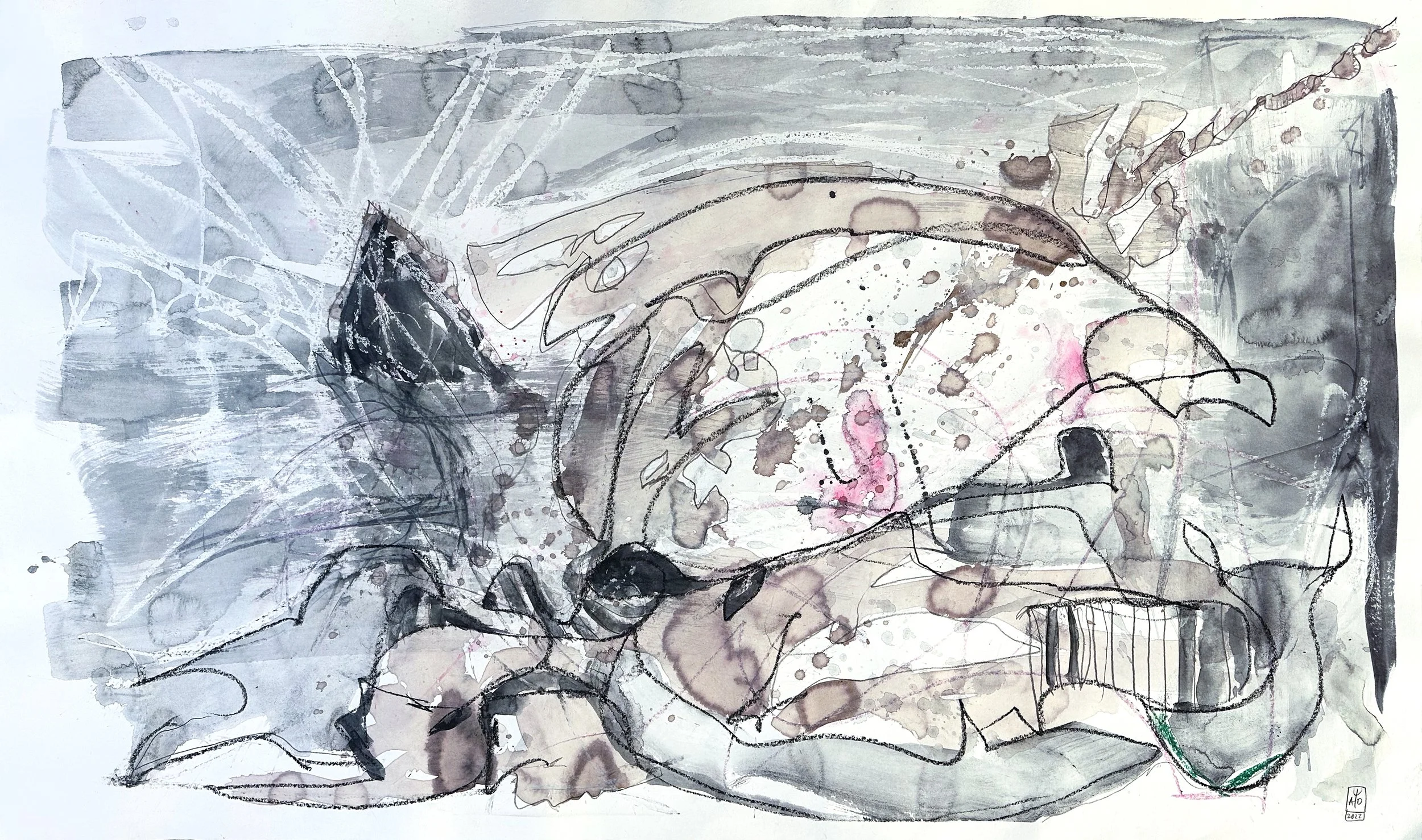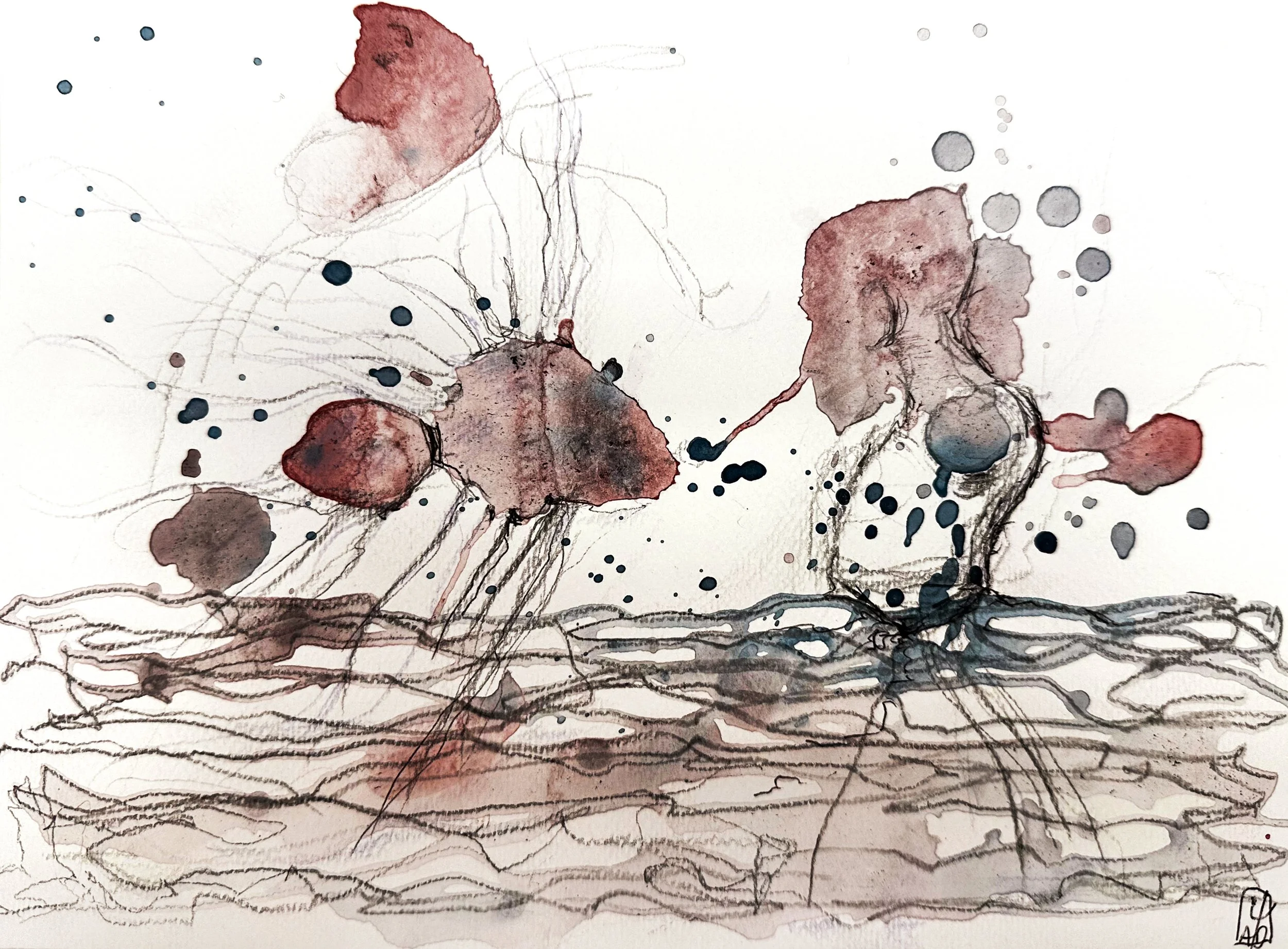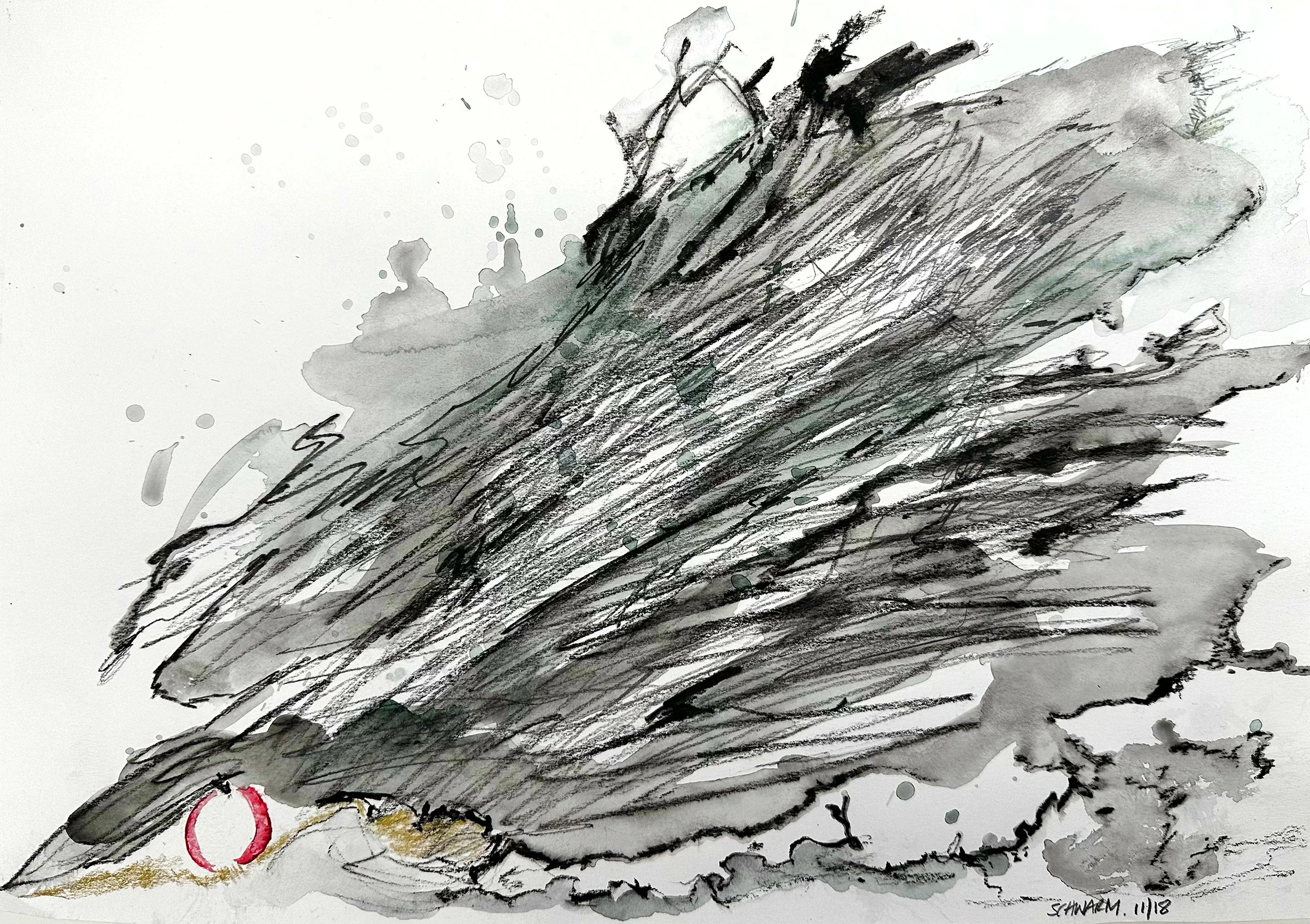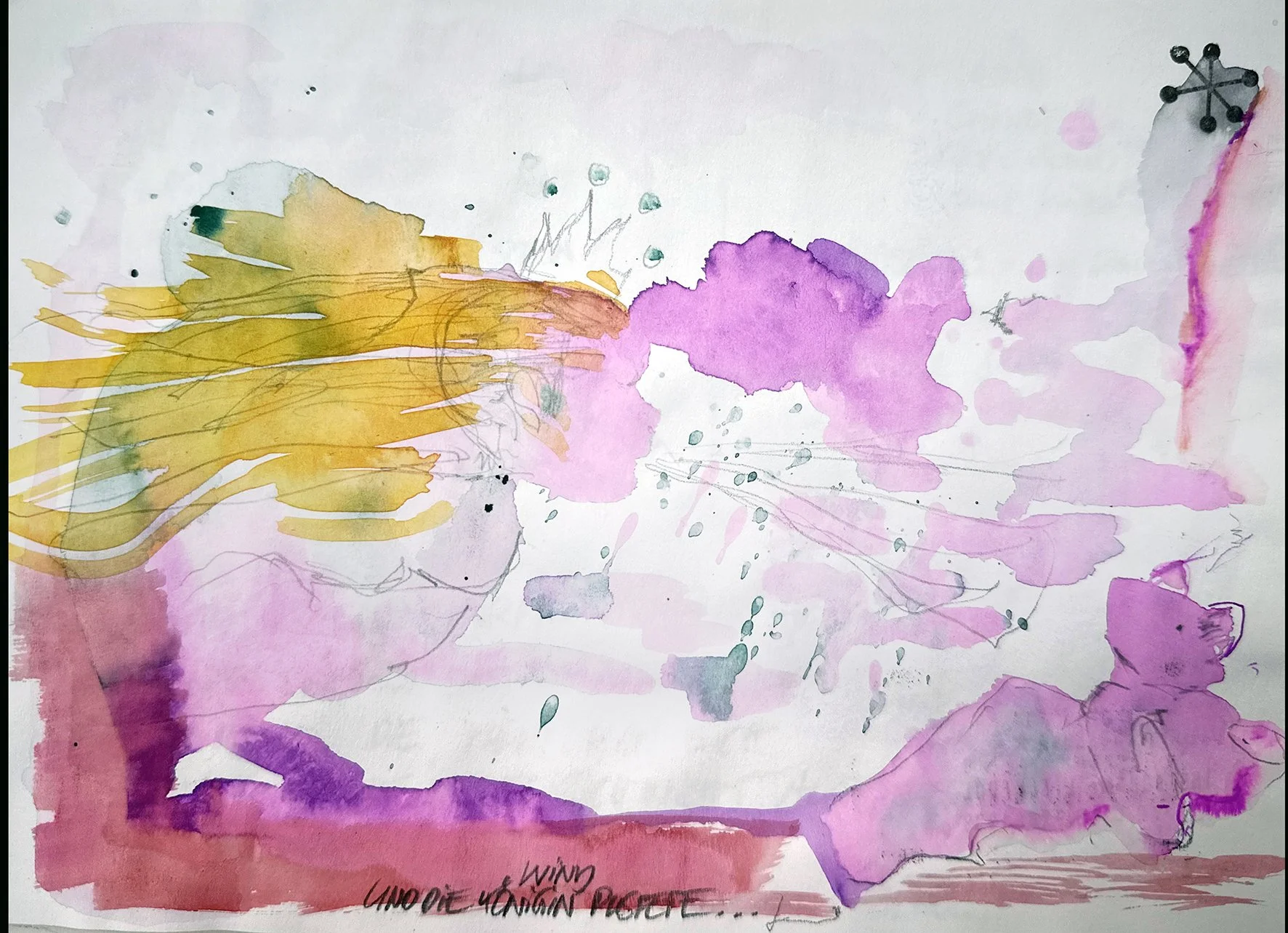 Lilith und der Wal - 12/22 - Aquarell, Kohle, Kreide, Wachs - 160x120