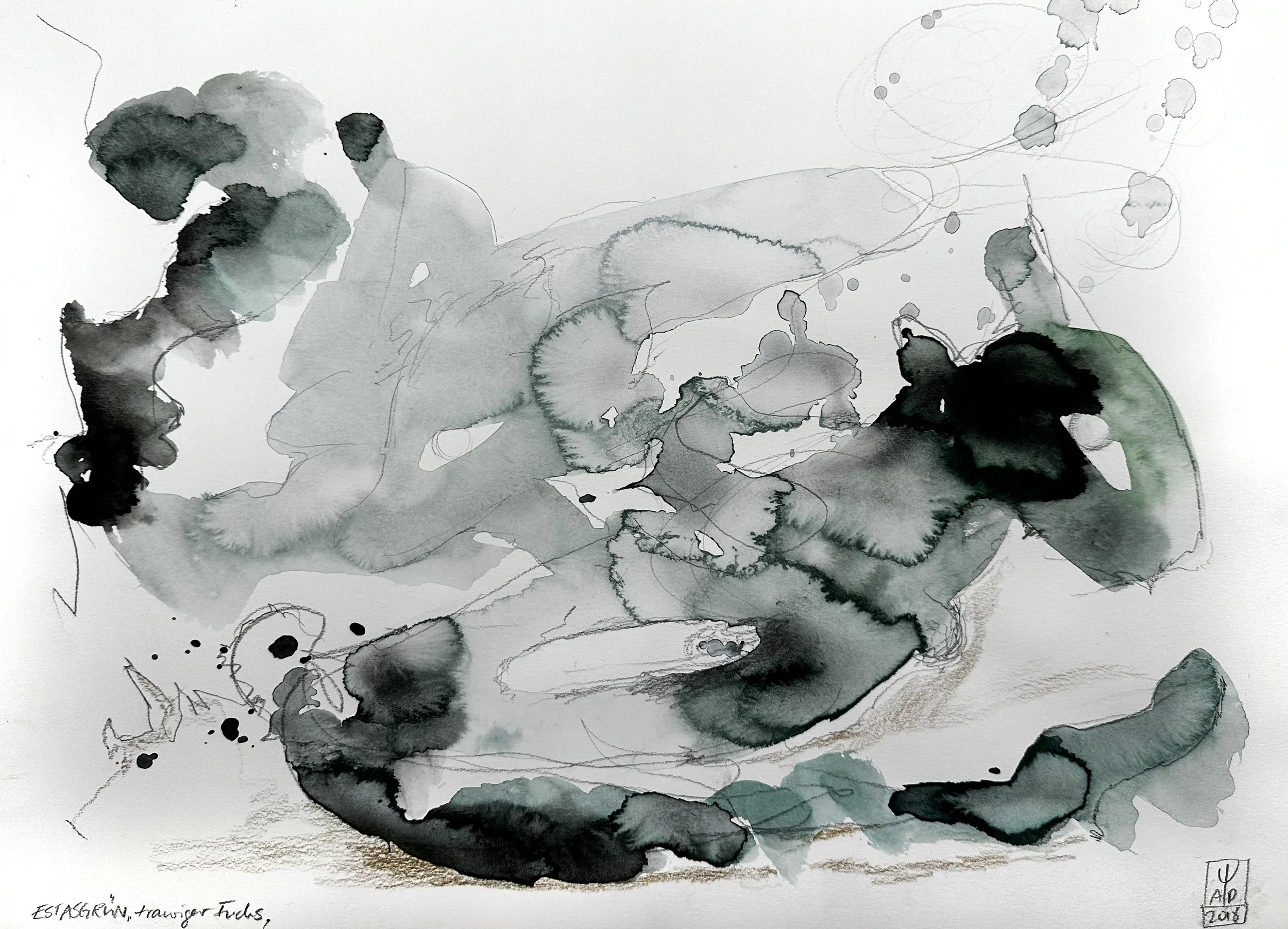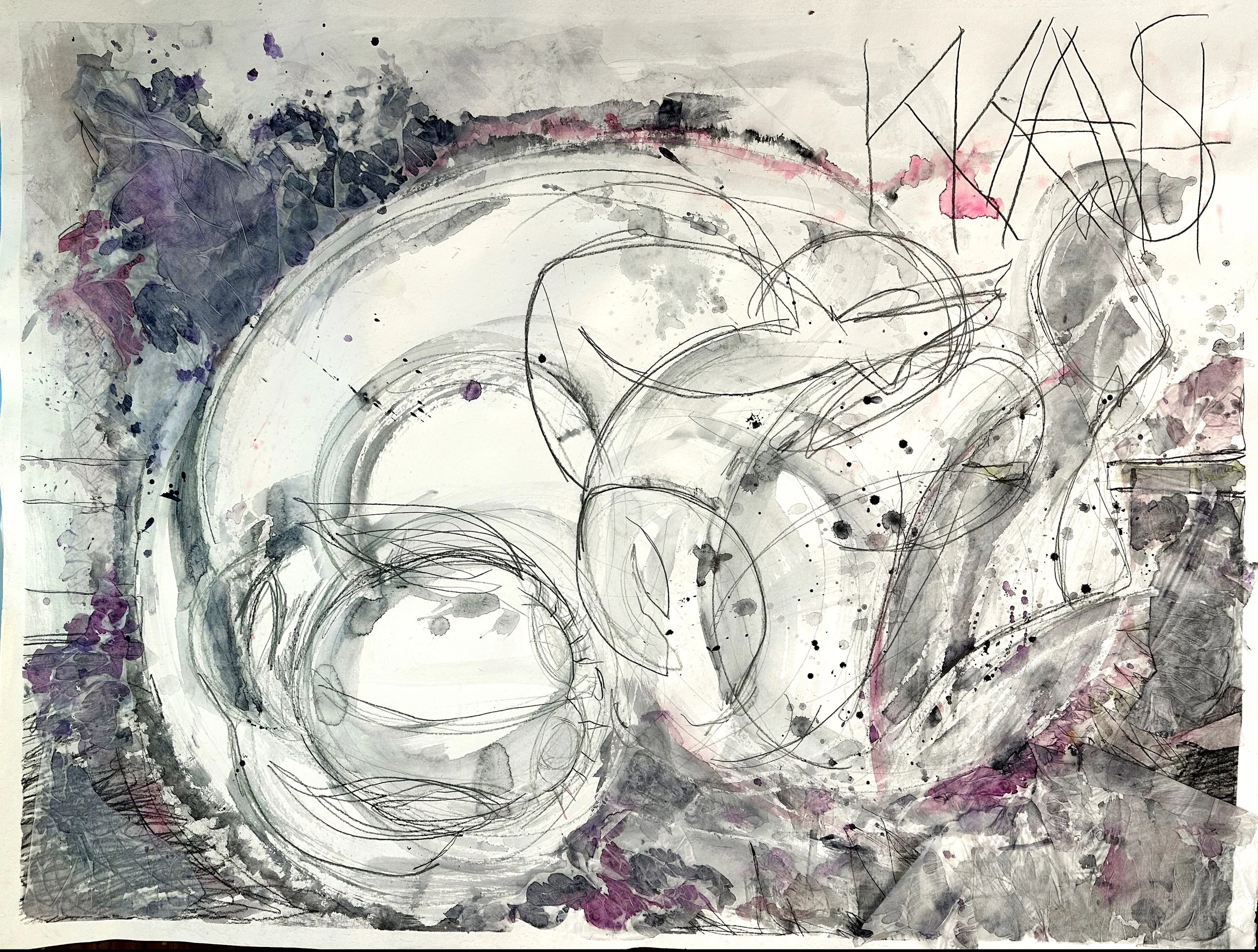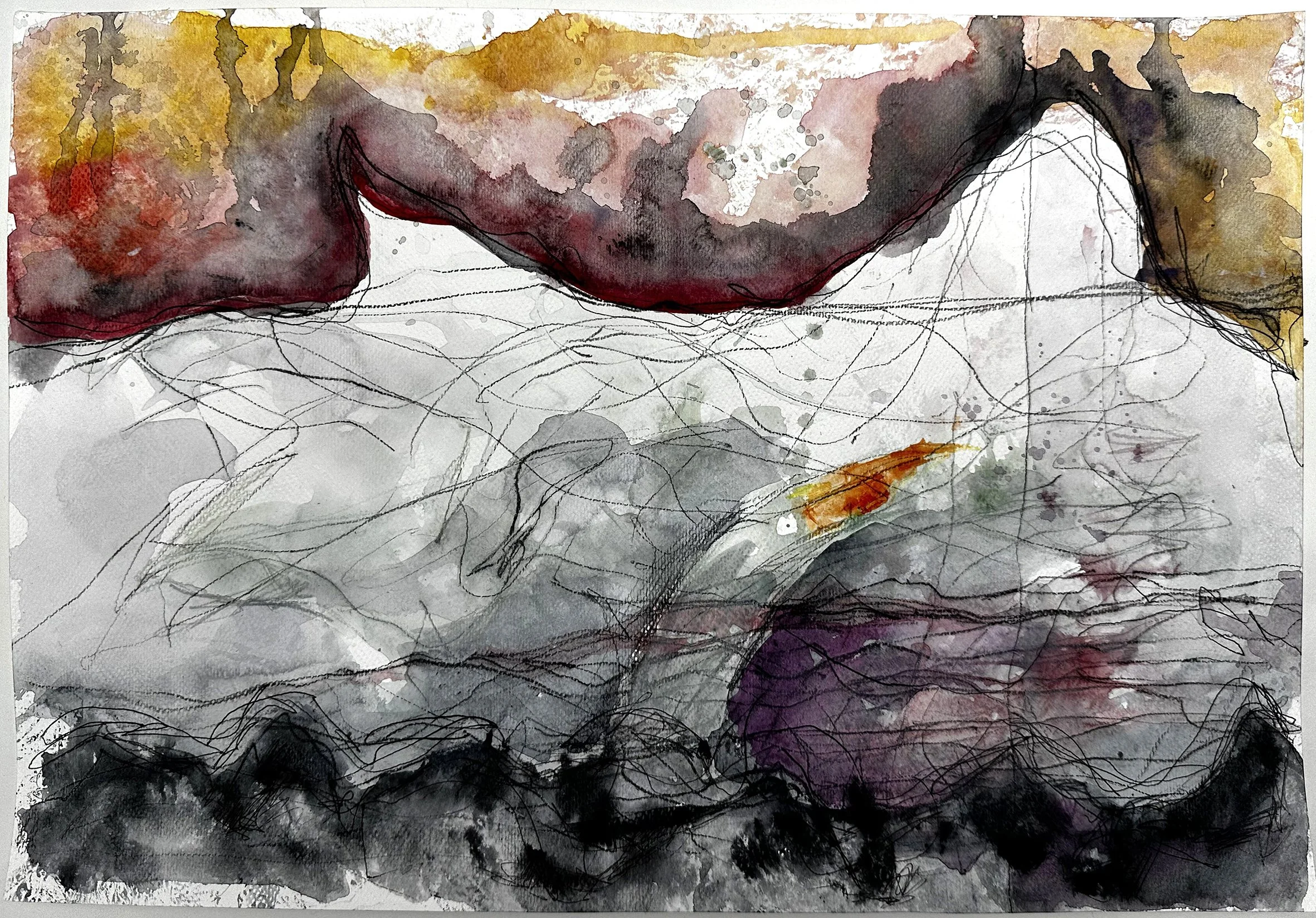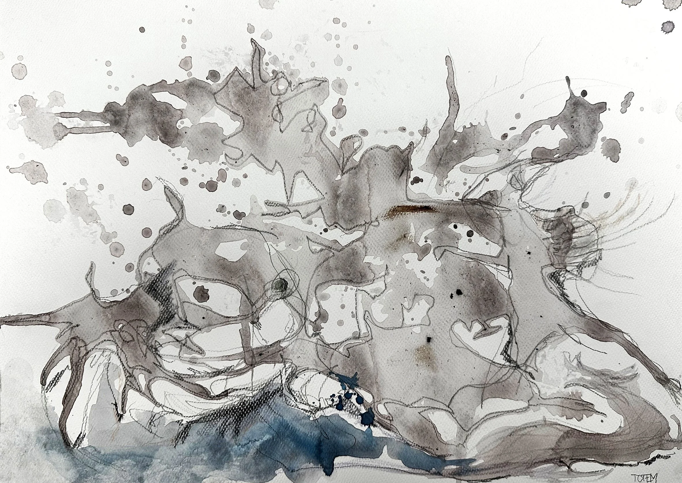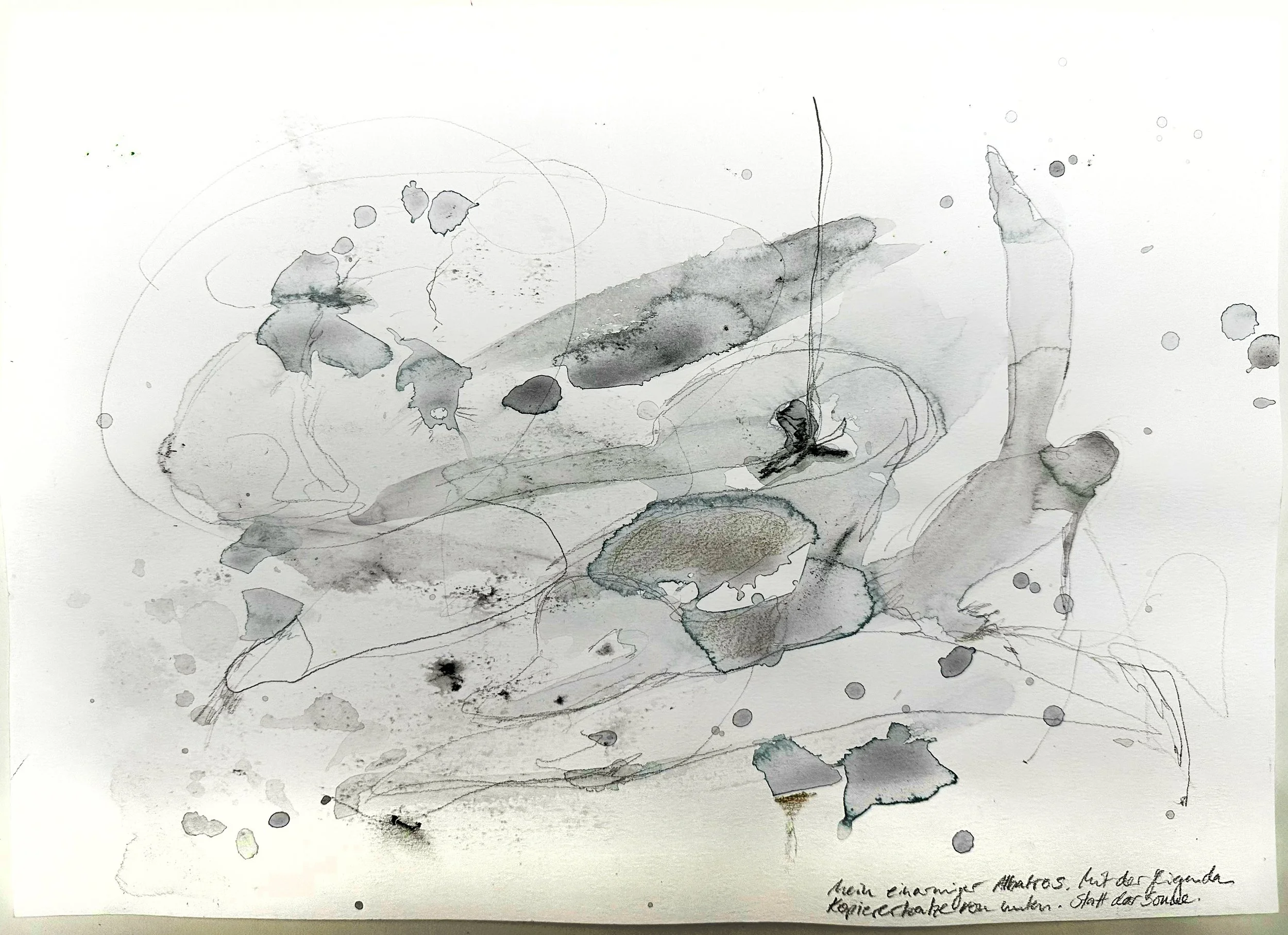 Lilith und der Wal - 12/22 - Aquarell, Kohle, Kreide, Wachs - 160x120