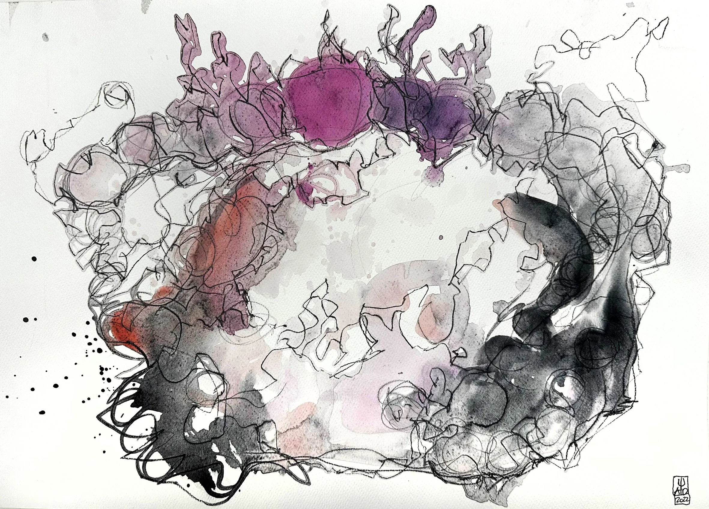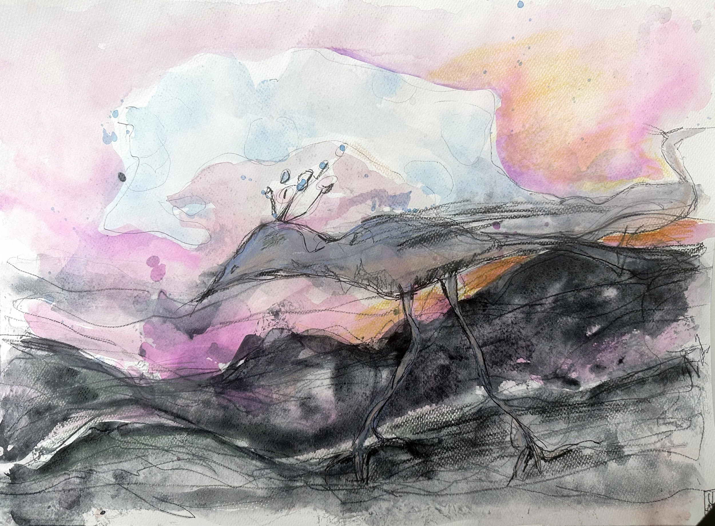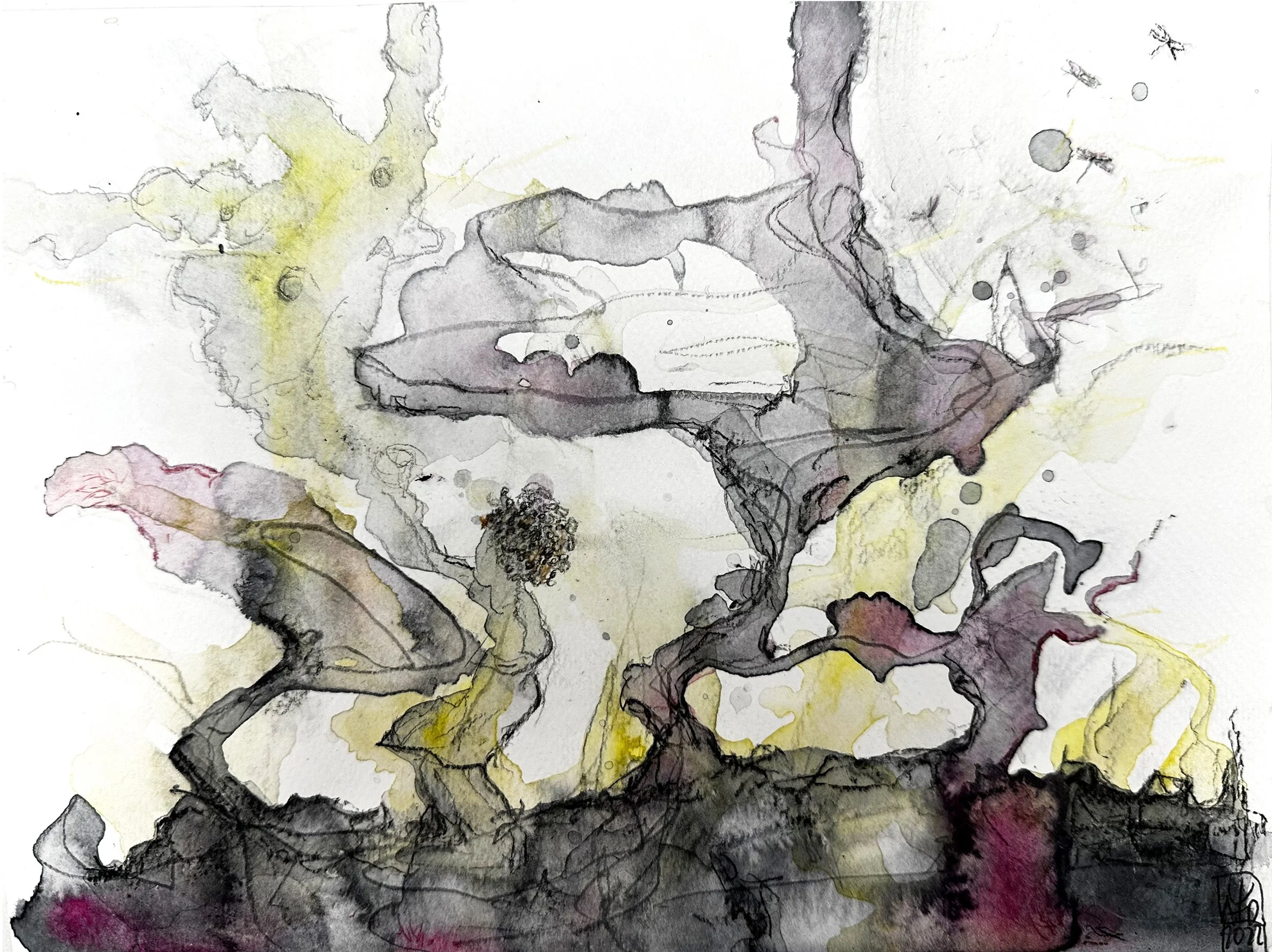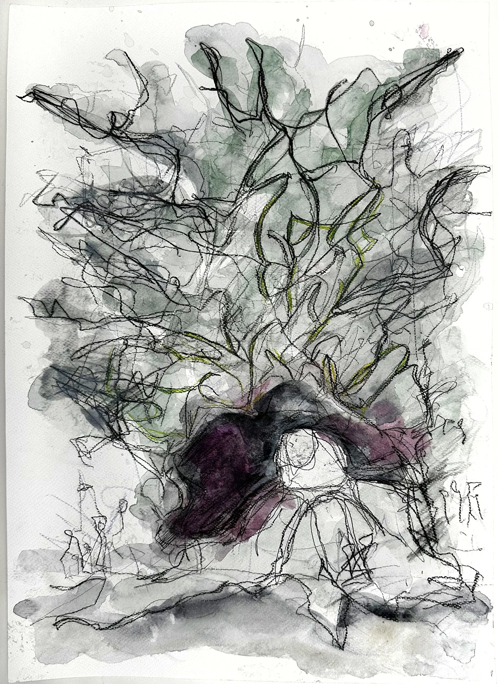 Lilith und der Wal - 12/22 - Aquarell, Kohle, Kreide, Wachs - 160x120