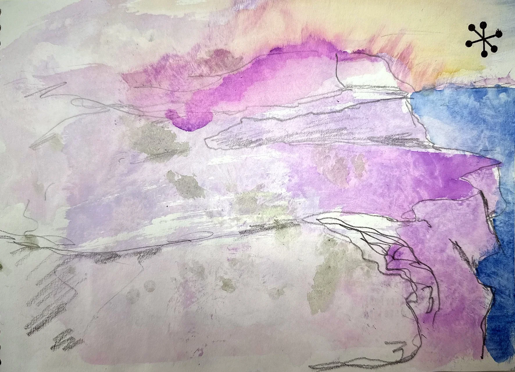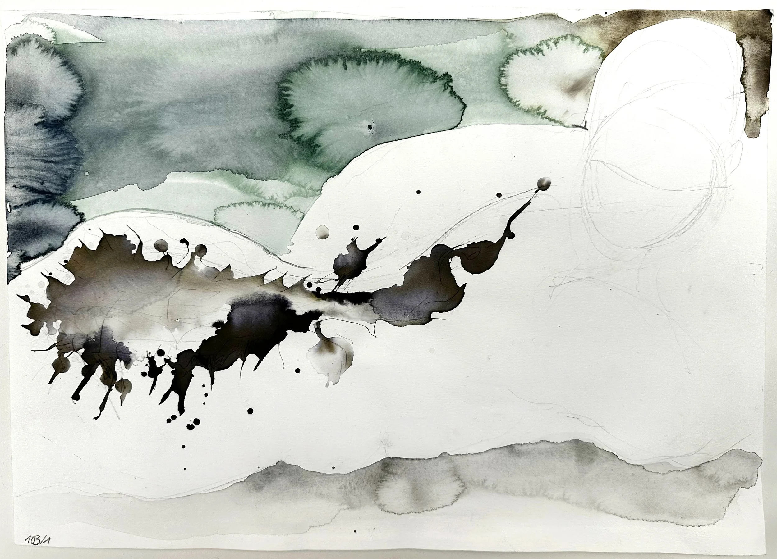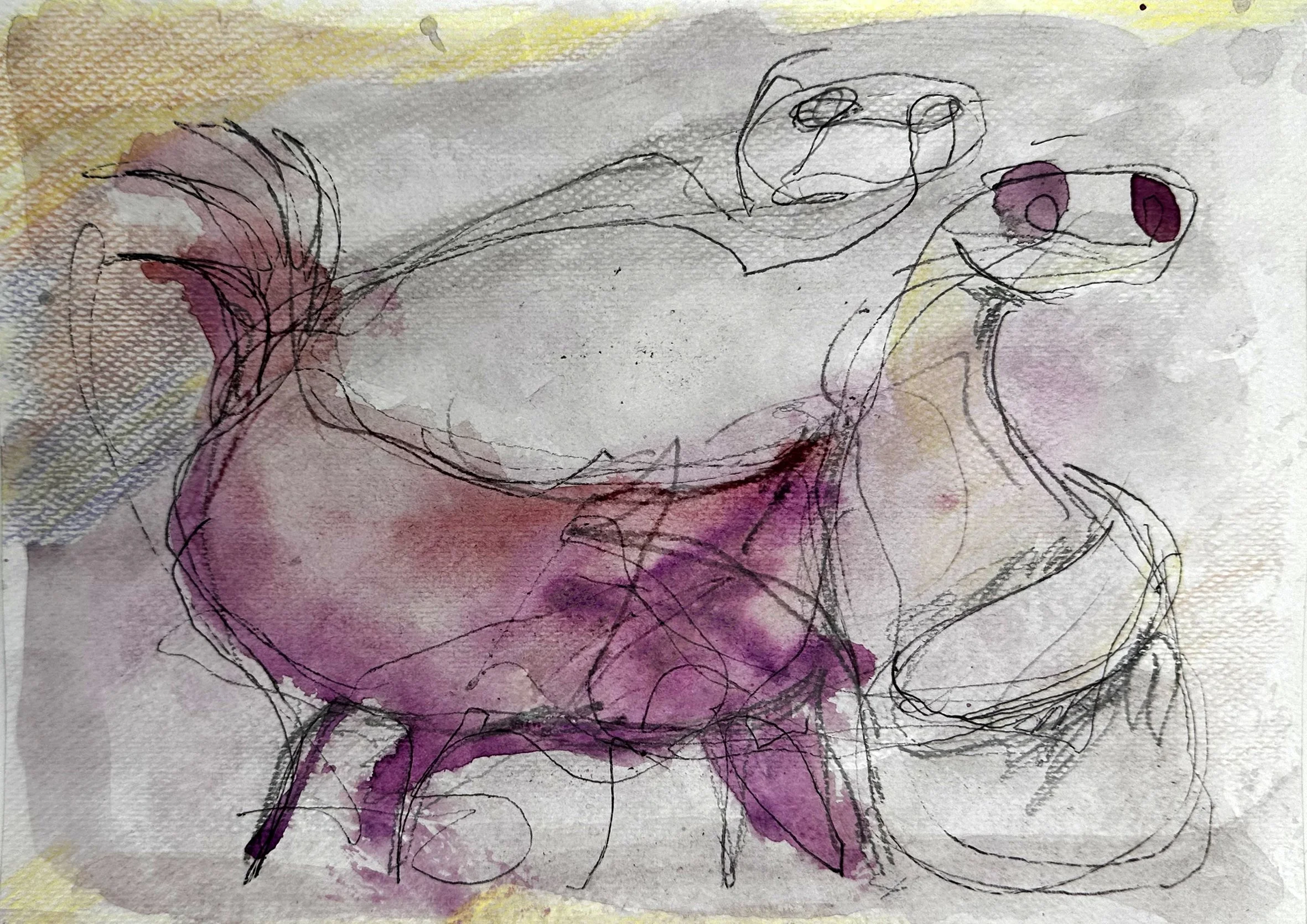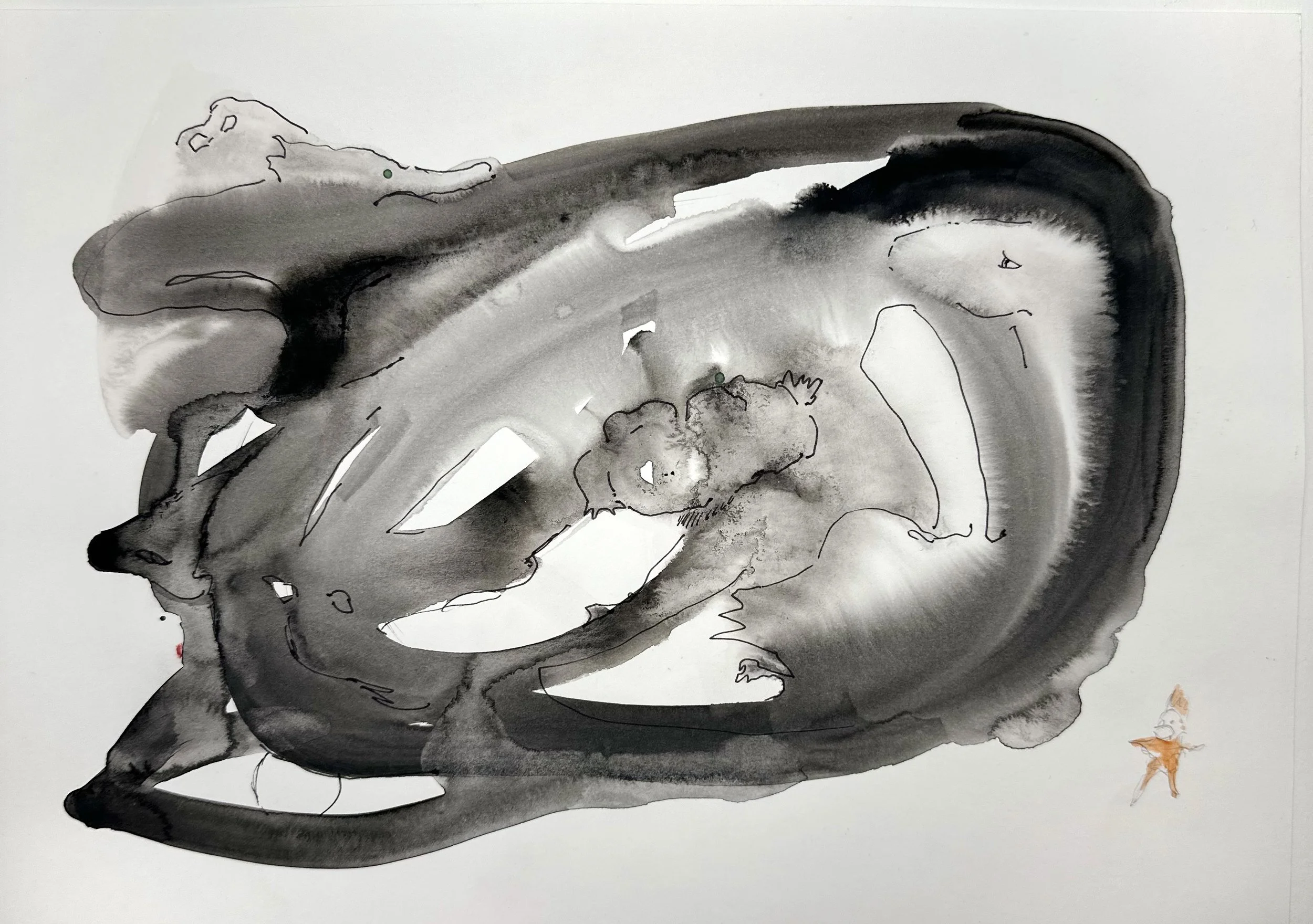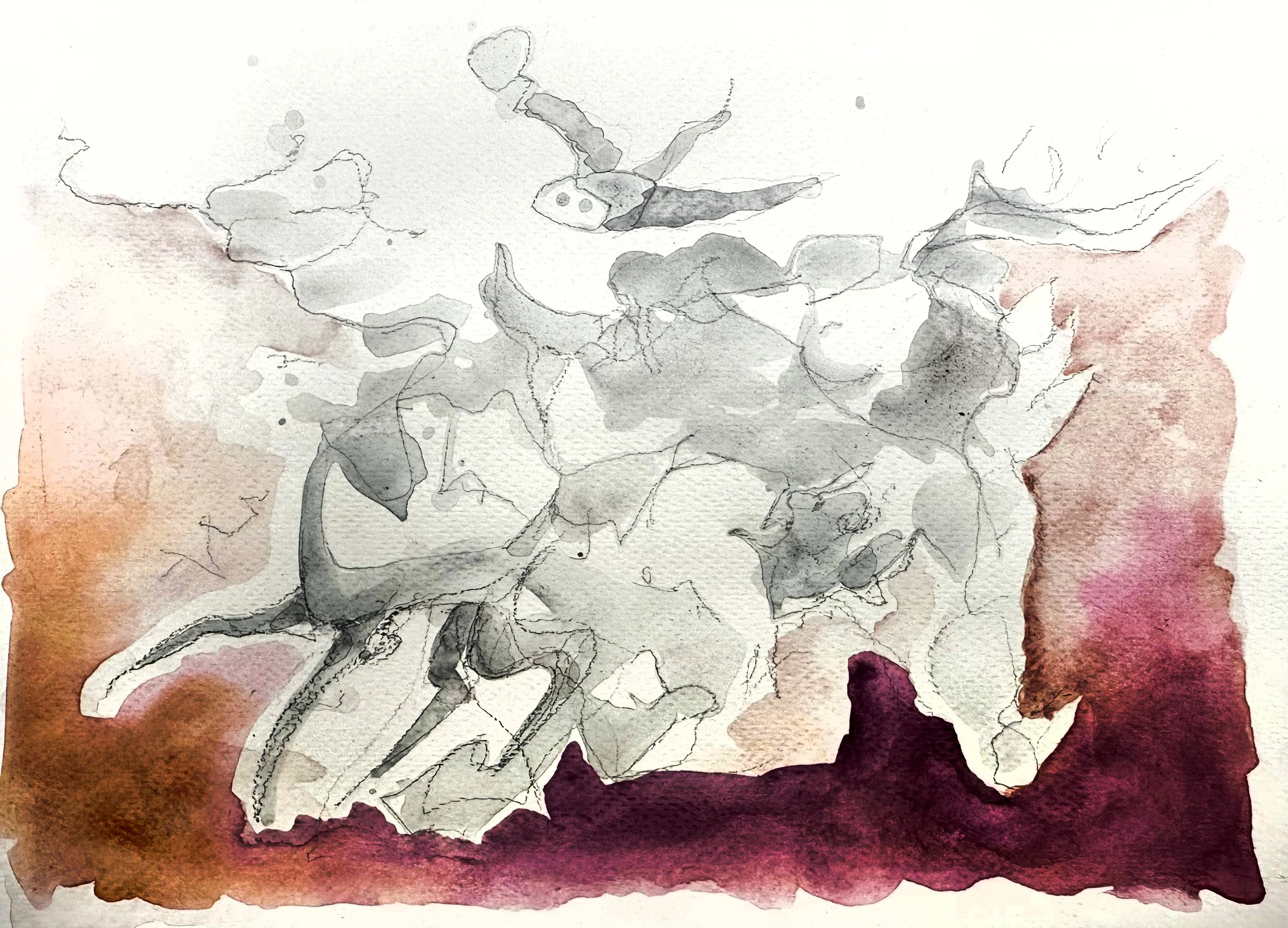 Lilith und der Wal - 12/22 - Aquarell, Kohle, Kreide, Wachs - 160x120