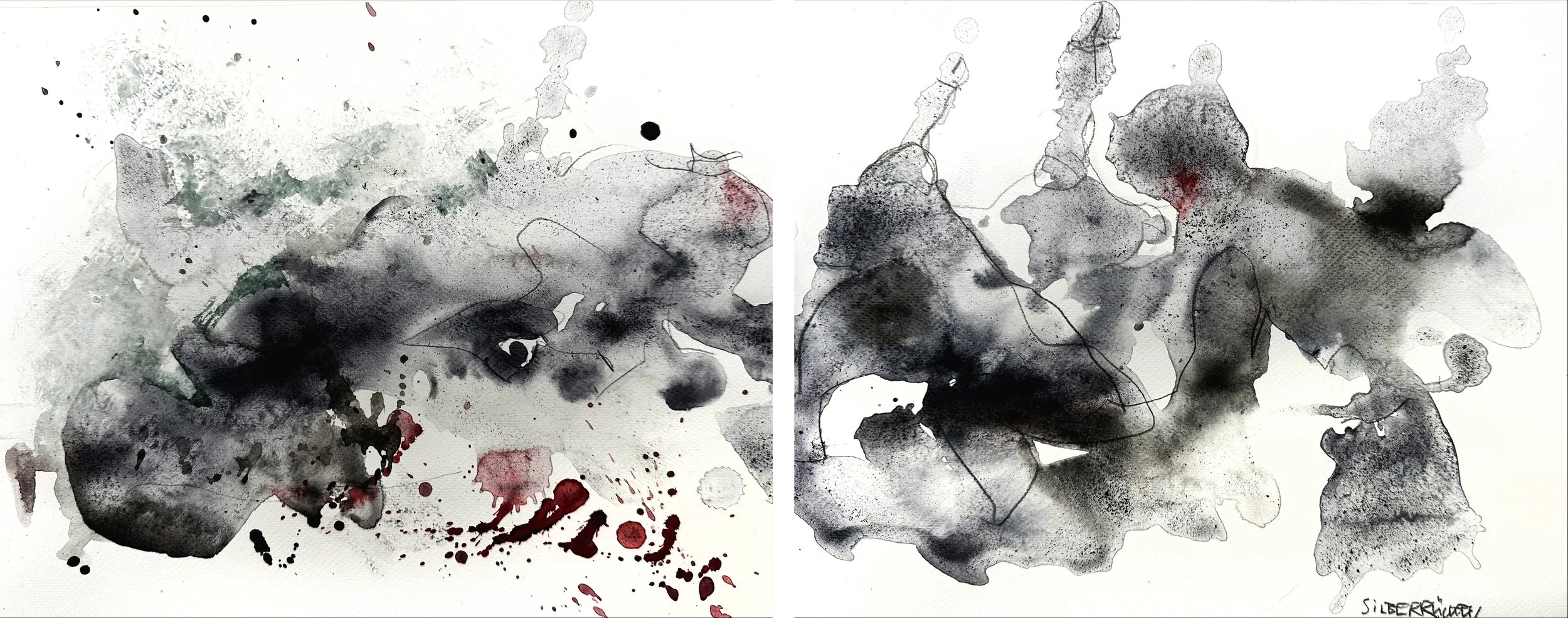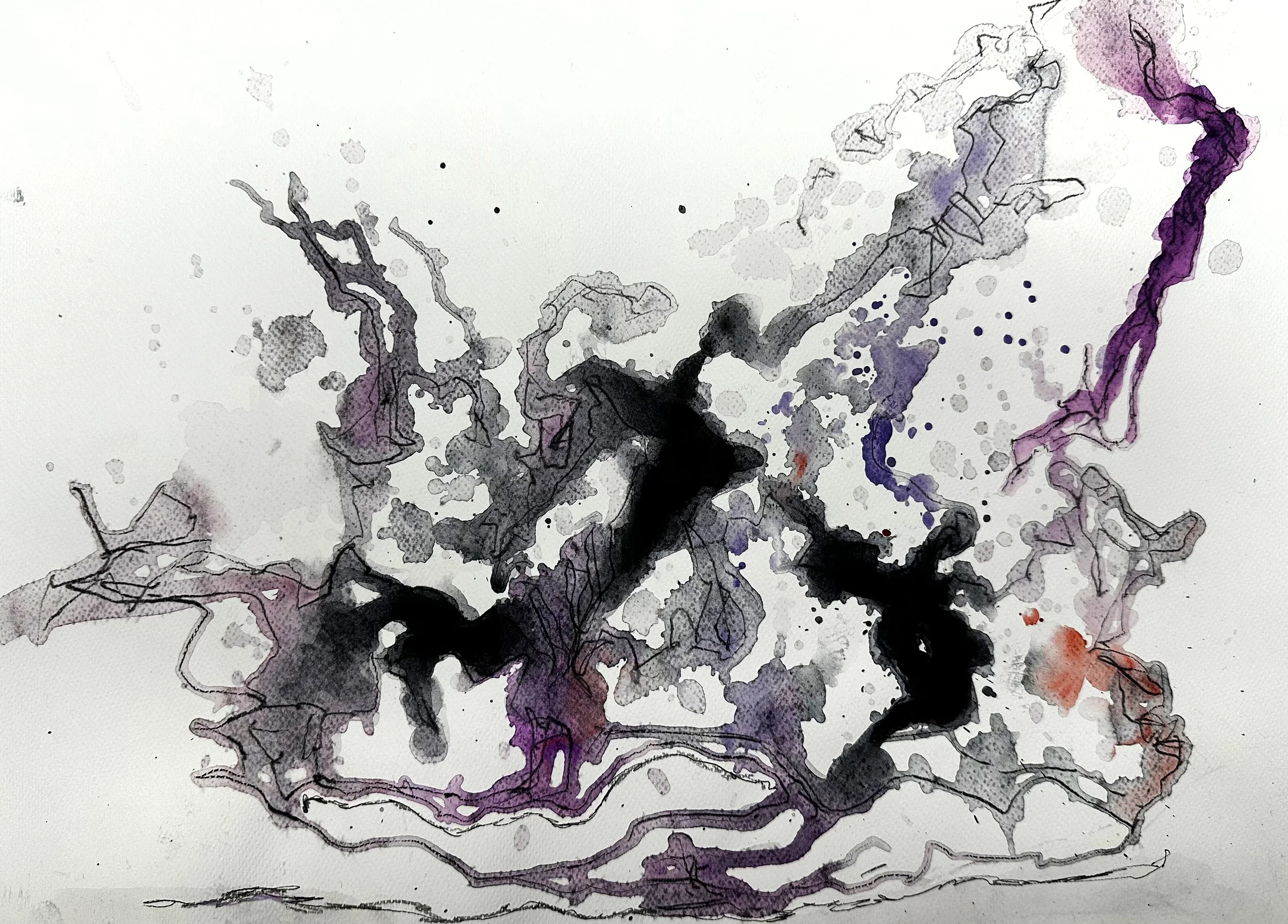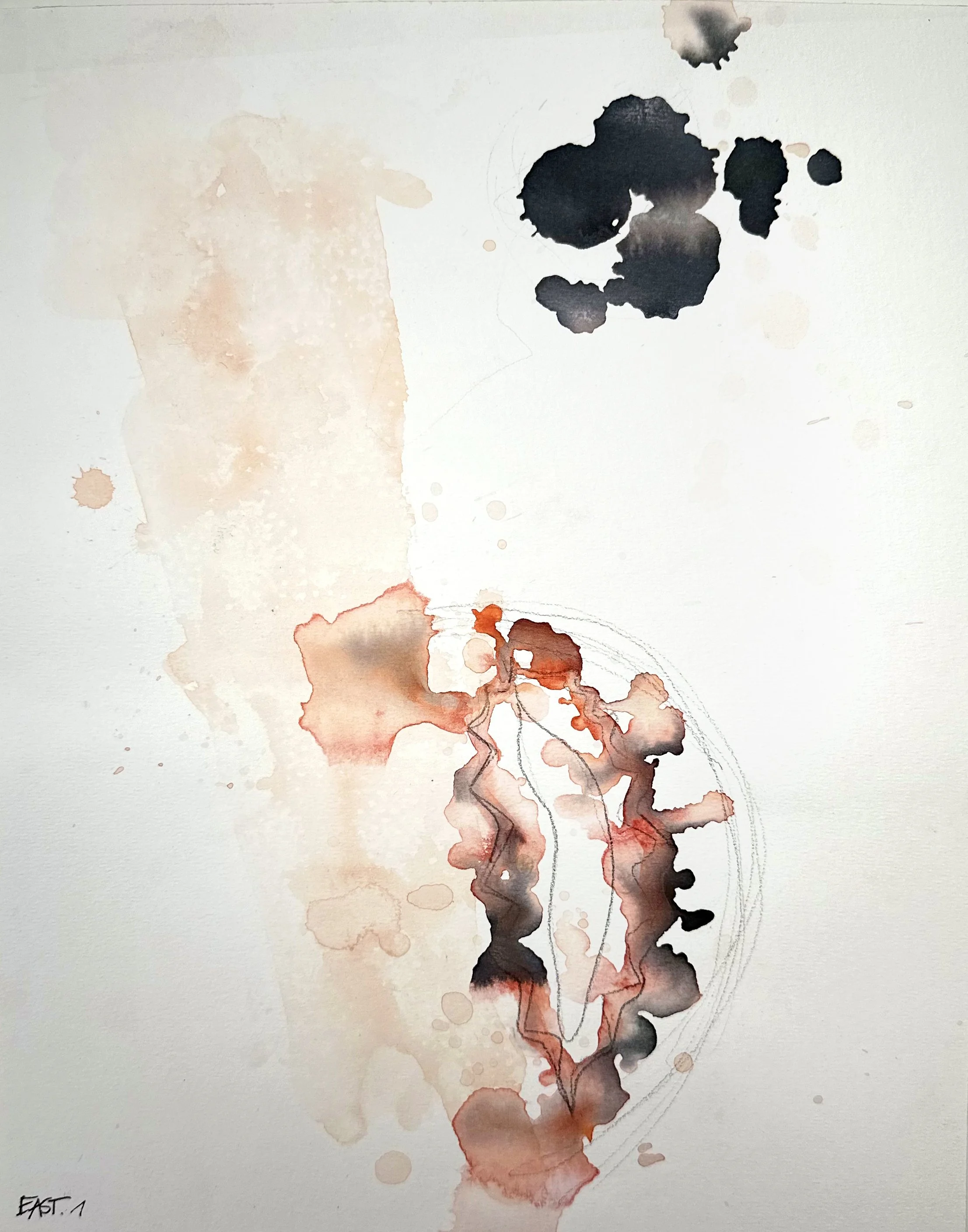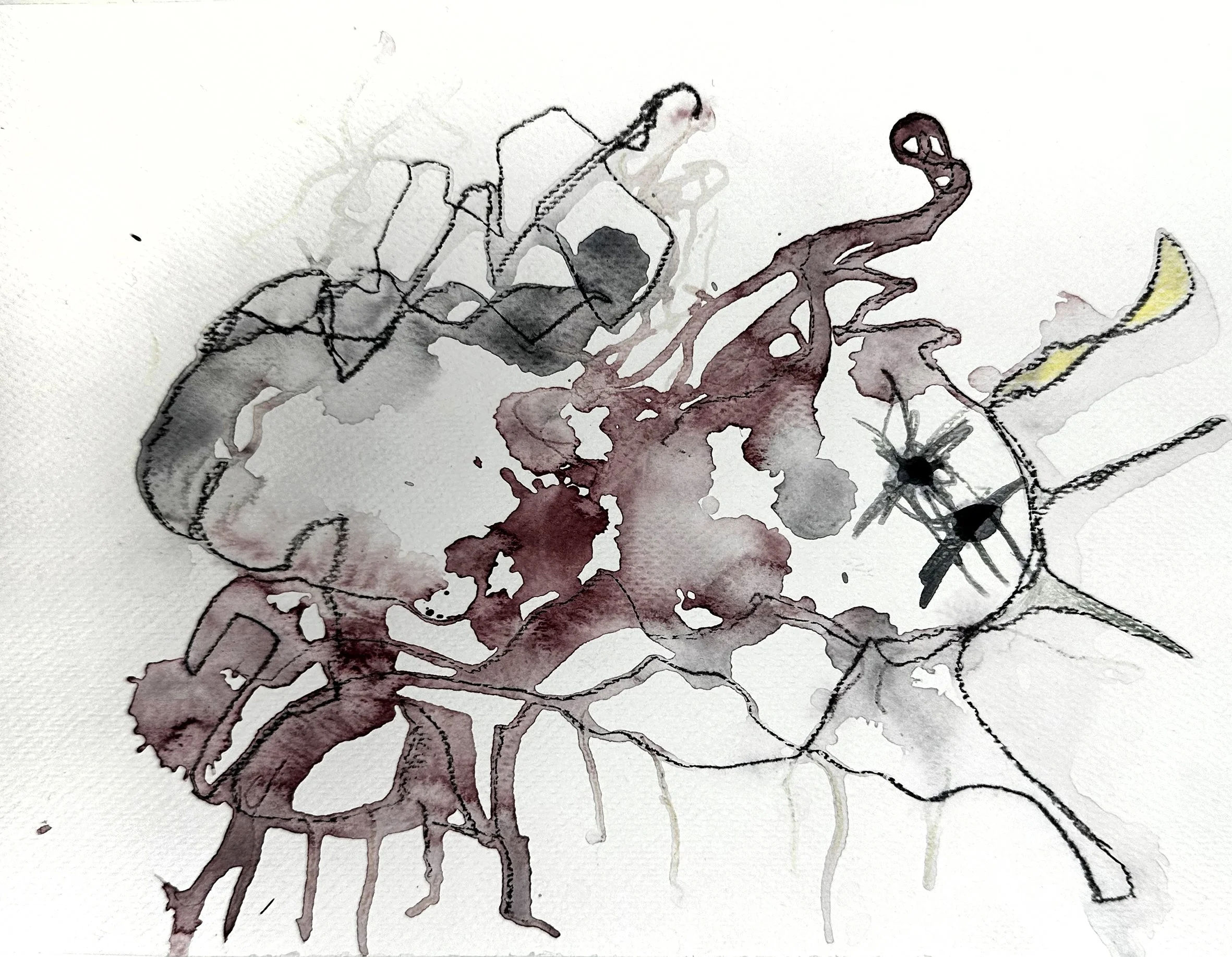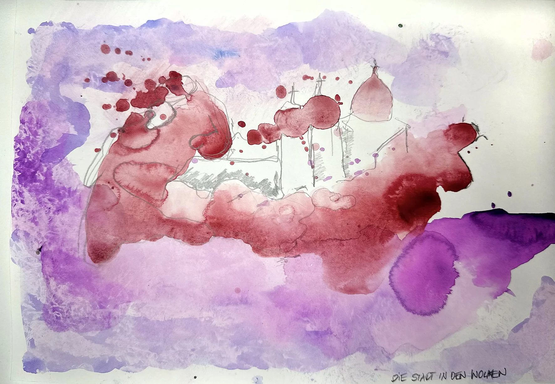 Lilith und der Wal - 12/22 - Aquarell, Kohle, Kreide, Wachs - 160x120