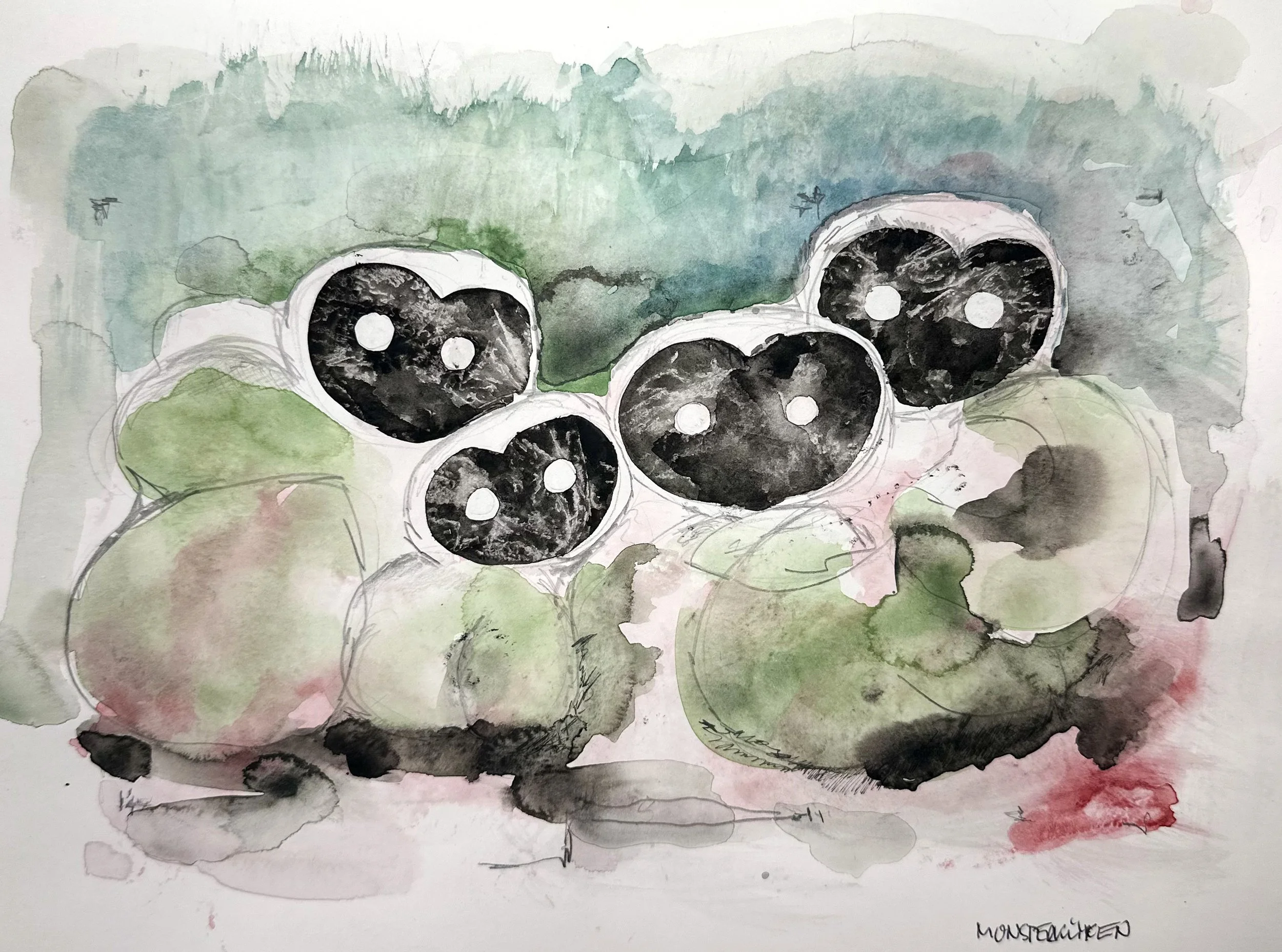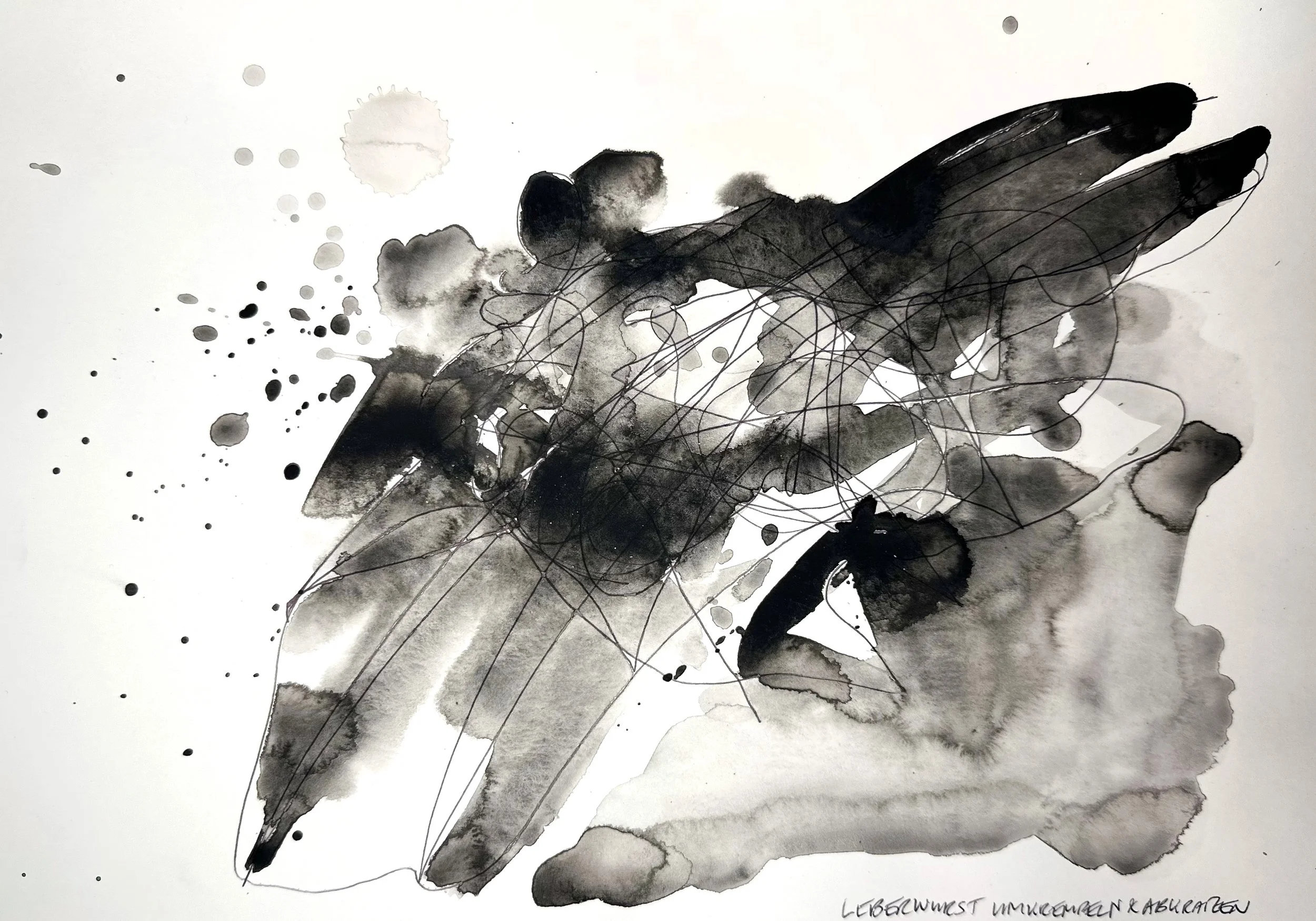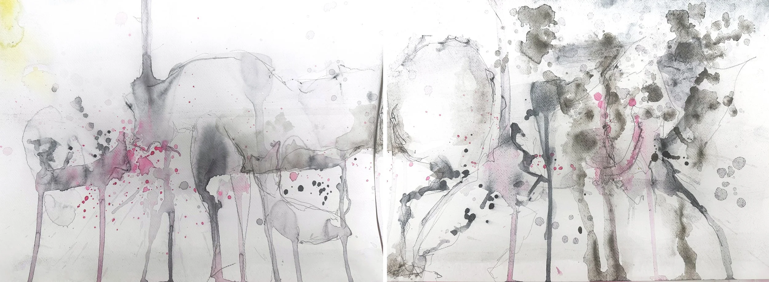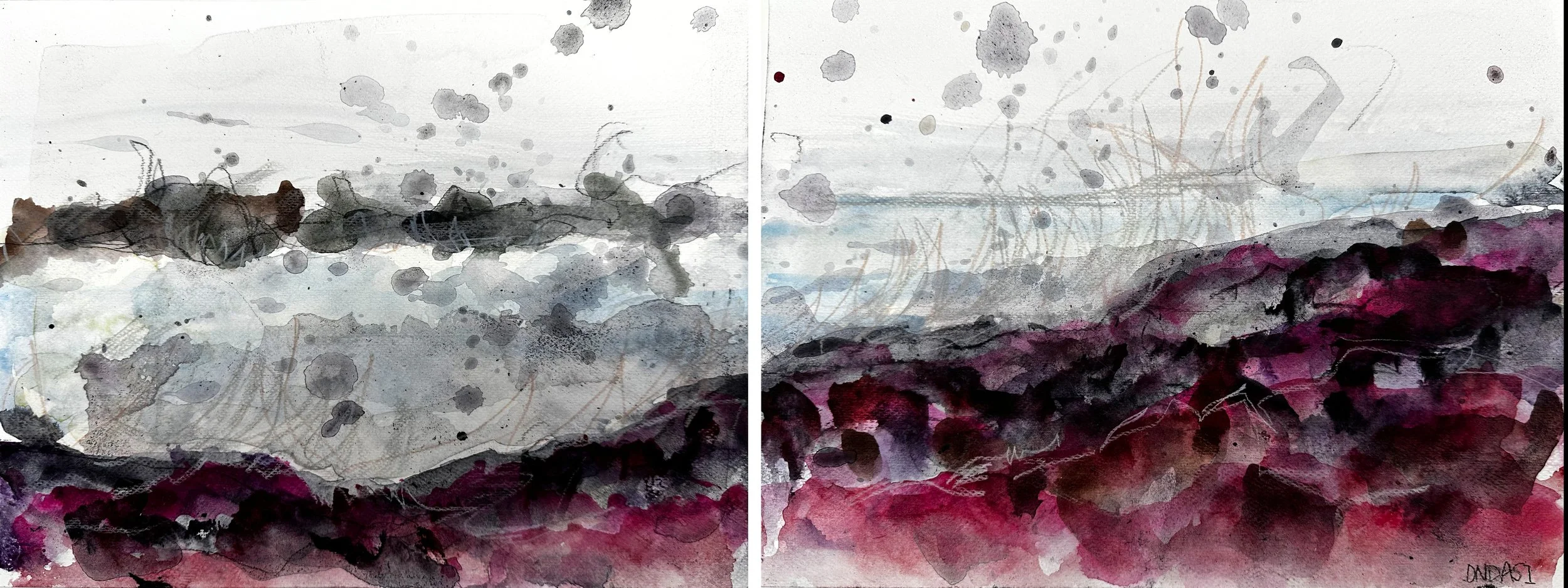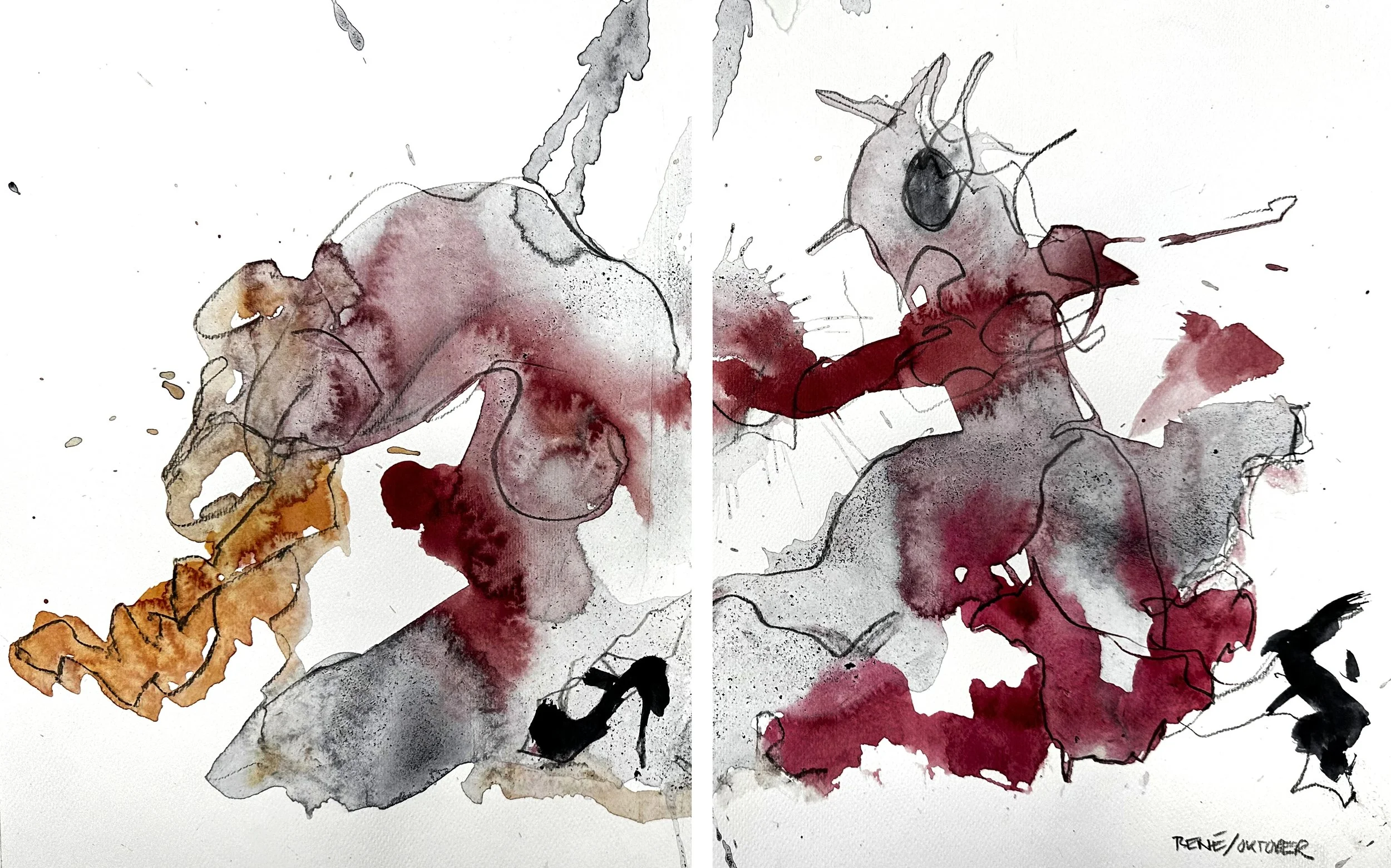 Lilith und der Wal - 12/22 - Aquarell, Kohle, Kreide, Wachs - 160x120